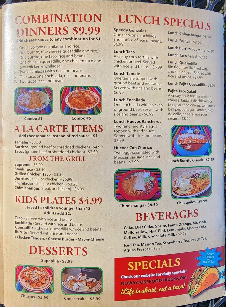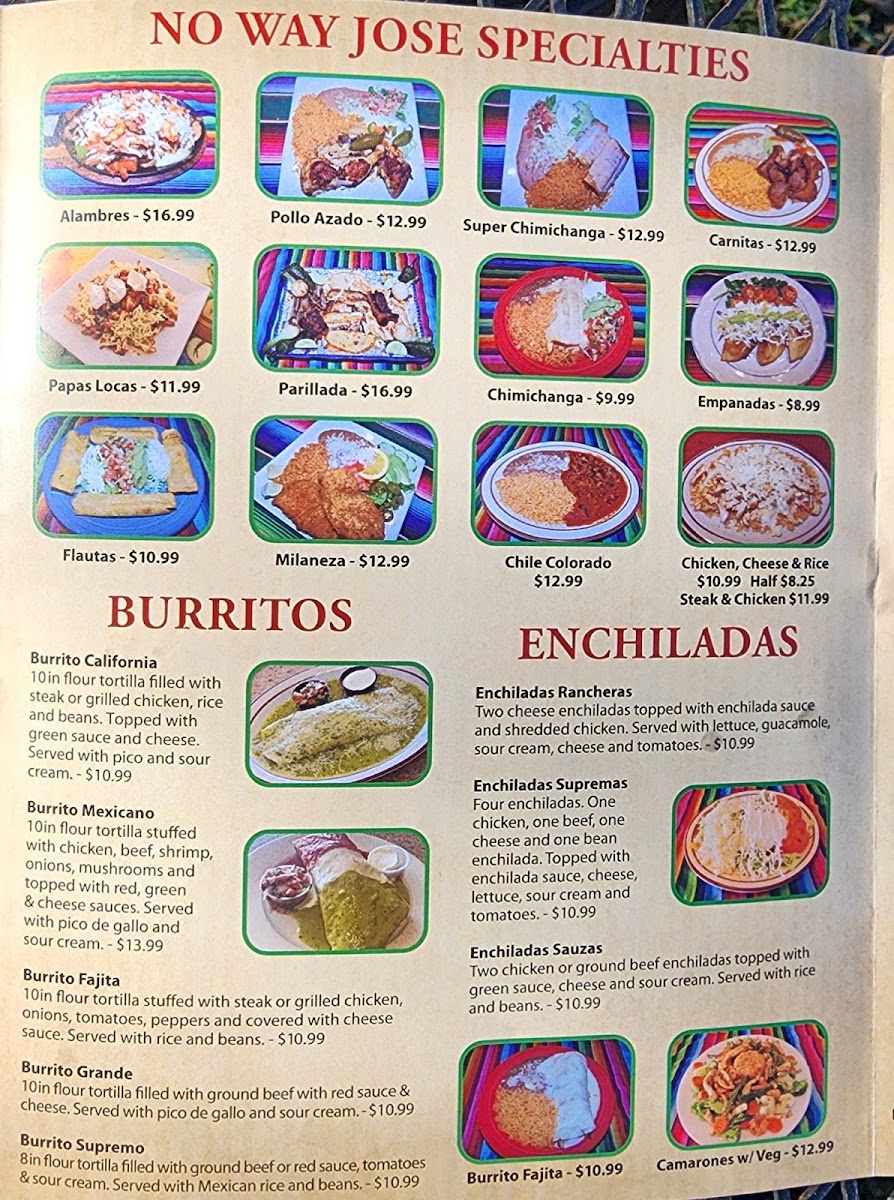 No Way Jose #1 Taqueria Menu